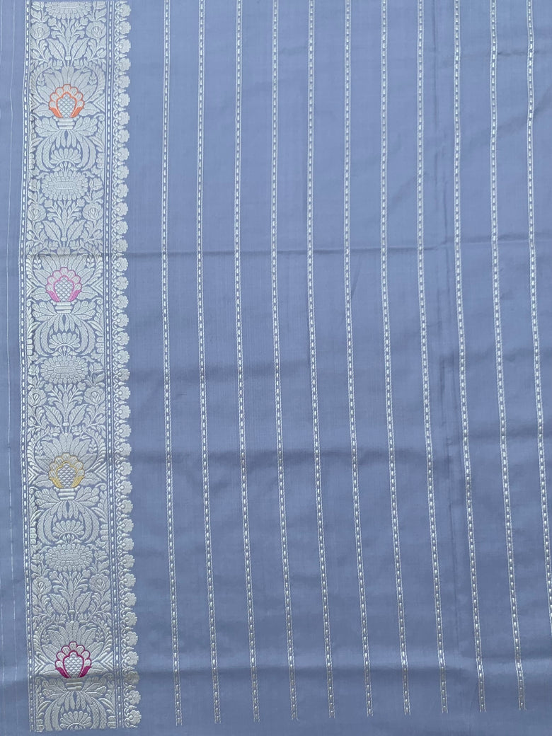 Banarasi Kadwa Weave Silk Saree Ice-Blue In Colour