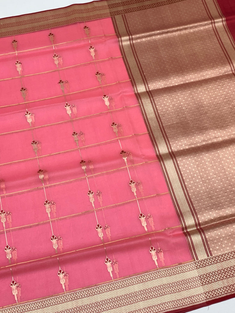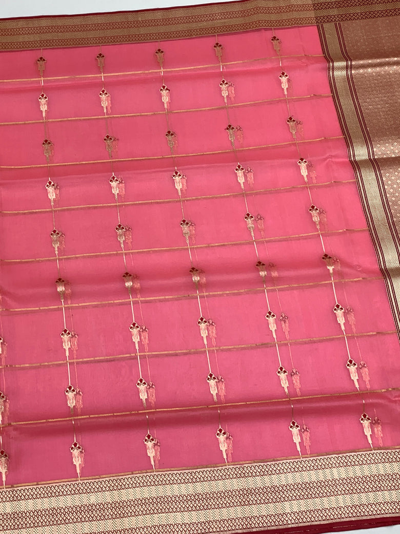 Banarasi Kora Silk Saree in Rose Pink