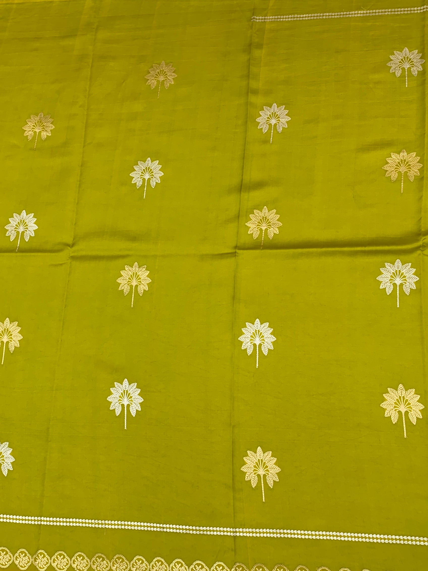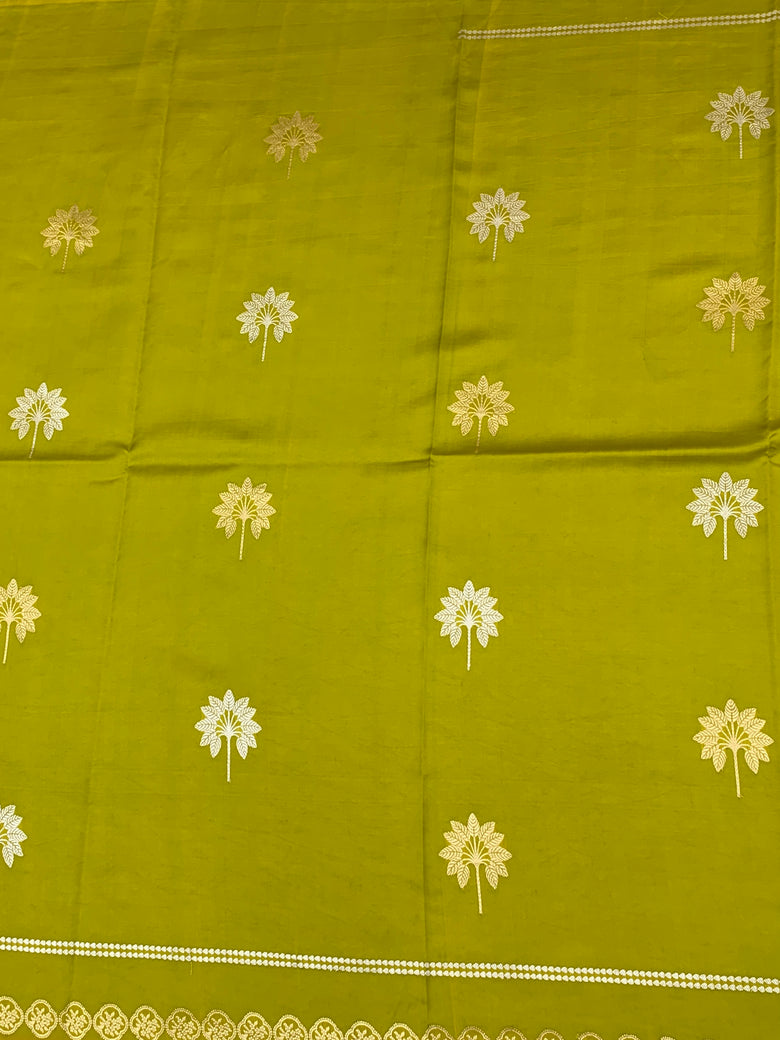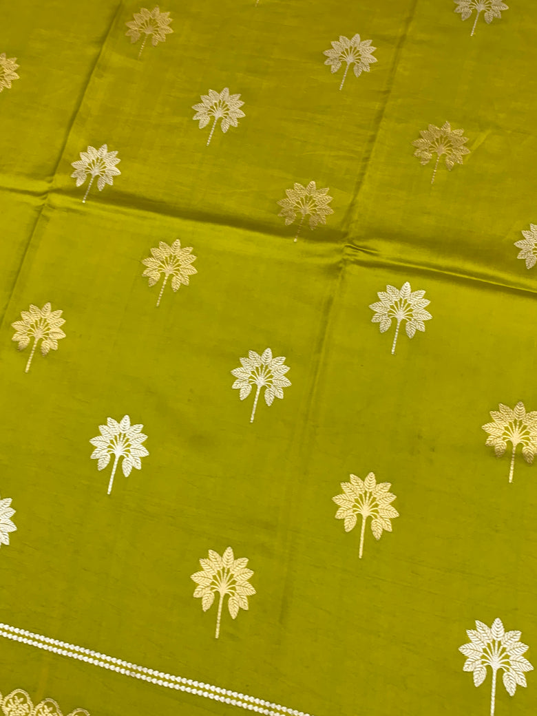 Chanderi Silk Saree Lemon-Green In Colour