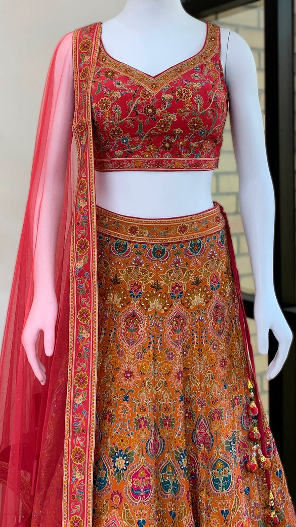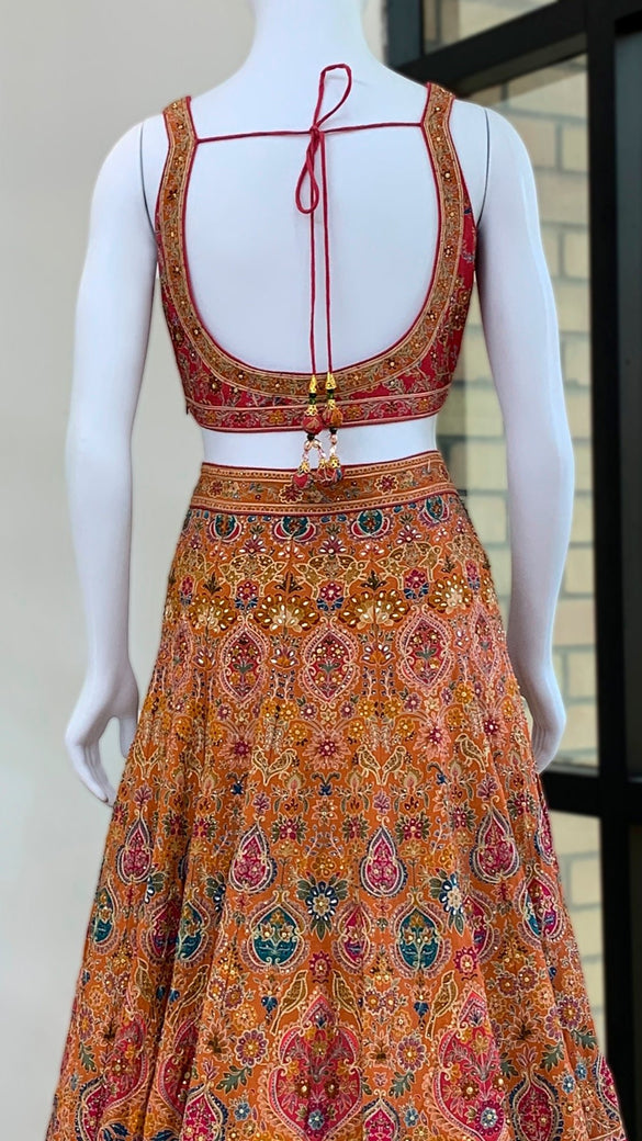 Orange Lehenga Set With Hand Embroidery