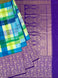 This Banarasi Brush Painted Saree in multi-colour showcases exquisite handwoven craftsmanship with hand brush-painted stripes throughout its body. It features a striking contrast gold zari border decorated with elegant animal motifs and a beautifully designed pallu. The set is completed with a plain purple blouse that carries a delicate gold zari border.