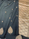 Green chanderi silk saree features an intricate all-over silver zari floral butti weave, complemented by a self-designed floral border and a richly brocaded pallu. The blouse is plain with a matching border.
