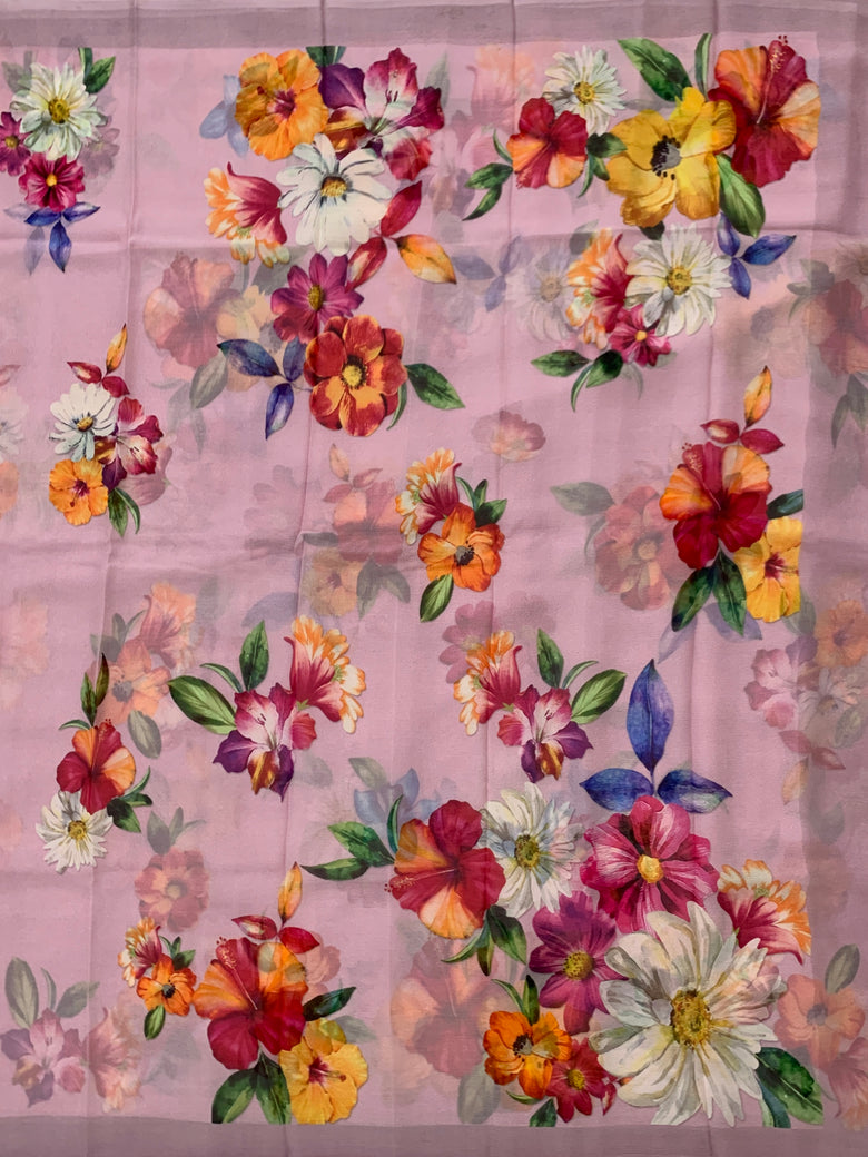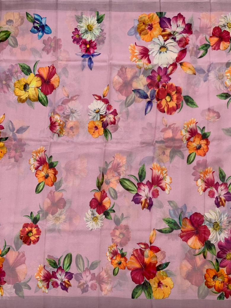 Chiffon Floral Printed Saree Mauve In Colour