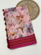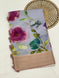Dark-green cotton Kota saree showcases a delicate all-over floral pattern, enhanced by a distinctive black thread-woven Vidarbha border. The pallu is elegantly decorated with zari stripes, while the blouse features a matching floral print with a coordinating border for a refined, cohesive look.