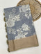 Light-lavender cotton Kota saree showcases a delicate all-over floral print, enhanced by a contrasting floral zari border. The pallu is beautifully decorated with brocade work, while the blouse features a matching floral print with a coordinating border.