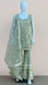 This georgette gown in black features intricate sequin work and floral buttis with a border, creating a stunning and elegant look.
