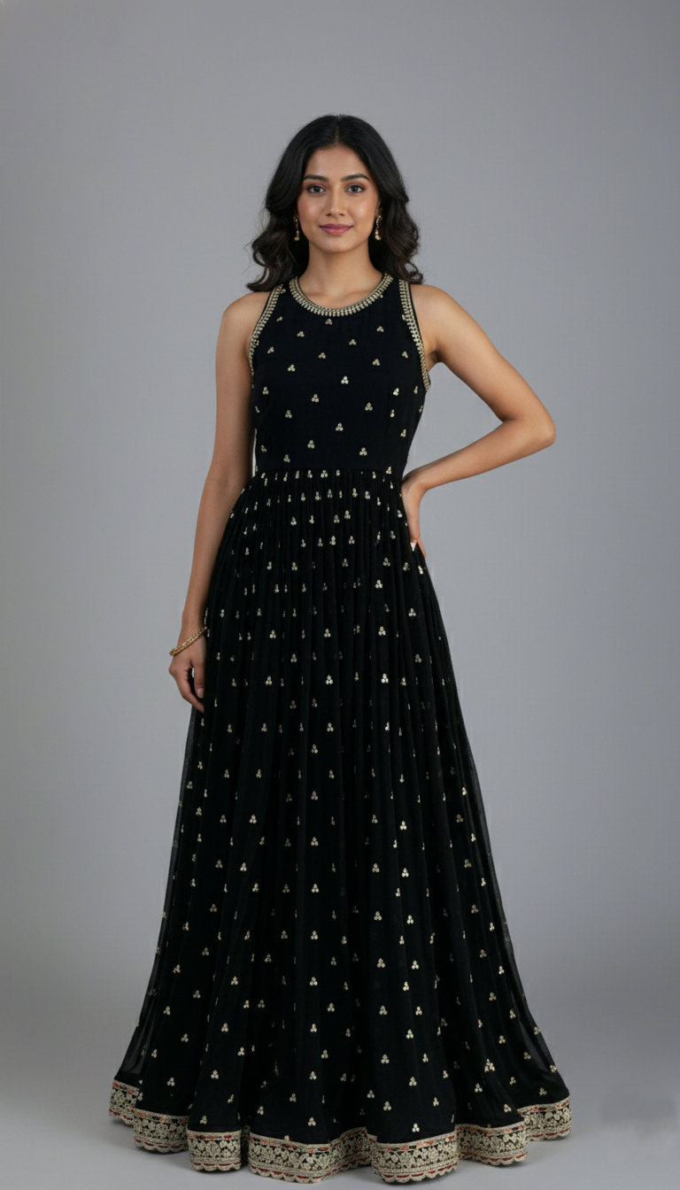 Georgette Gown Black In Colour