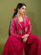 This violet georgette lehenga is adorned with delicate thread work floral embroidery and sequence embellishments all over the fabric. The blouse also features self thread work floral embroidery, while the matching dupatta is embellished with a border and self floral buttis.