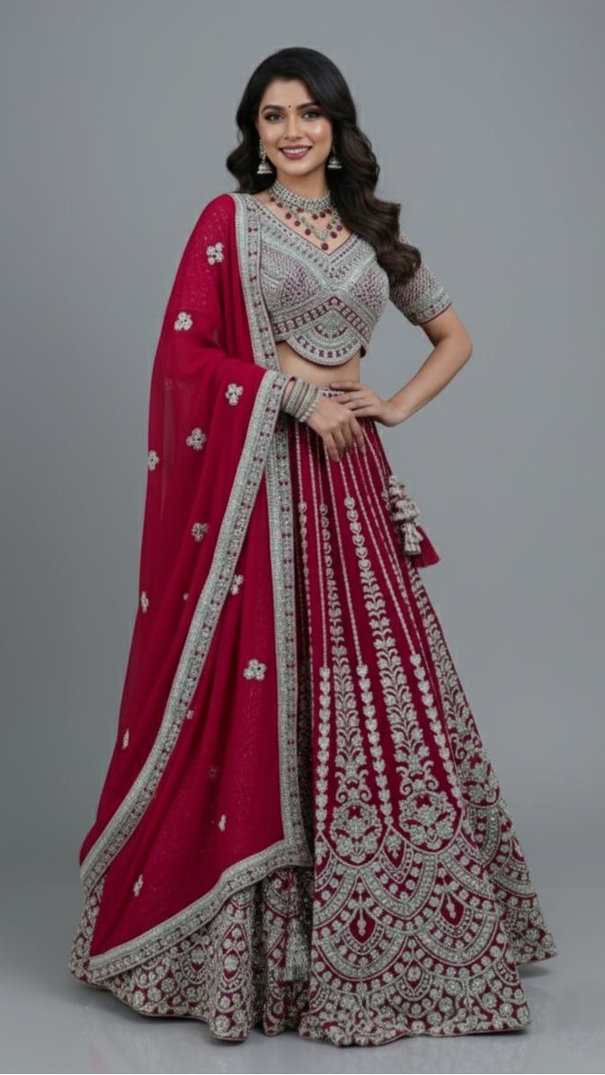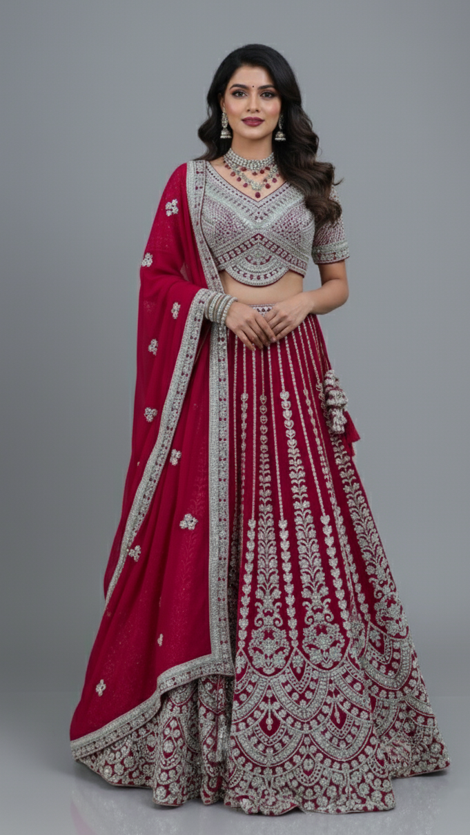 Georgette Lehenga Dark-Pink In Colour
