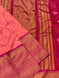 The Patola French -Knot Silk Saree is adorned with an all-over zig-zag design and a self multi-color floral petite-point border. The floral pallu adds a touch of elegance to the vibrant orange color. The secondary color of pink complements the saree perfectly. The blouse is plain with a petite-point floral border to complete the look.