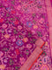 This elegant light-pink Jamdani saree showcases a delicate all-over meenakari floral jaal pattern, enhanced by a self brocade border and pallu. The accompanying blouse is also adorned with a zari border design.