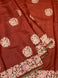 Jamdani Saree in purple features a stunning gold and silver floral design throughout the fabric. The saree is also adorned with a self gold zari border and pallu, while the accompanying blouse is elegantly plain with a zari border.