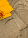 The Kanjeevaram Printed silk saree features an all over floral jaal design, complemented by a contrasting gold zari elephant motif border and brocade pallu. The saree's color is bottle-green, and it comes with a contrast patola blouse with a zari border.