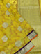 This Kanjeevaram silk saree features a stunning weave of gold zari floral brocade all over, with a contrasting peacock motif border and brocade pallu. It comes in a classic black color and a plain zari border blouse for a complete and elegant look.
