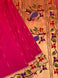This handwoven paithani saree features an intricate weave of gold zari polka buttis on the body, complemented by a self resham thread floral and bird motifs on the big border and pallu. The overall color of the saree is a vibrant yellow, while the blouse is plain with a delicate muniya border.