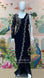 This co-ord set features a pastel-green dress made of georgette fabric, adorned with a delicate all-over floral print complemented by sparkling sequence work on the top. The bottom half is kept plain for a subtle yet stylish look.