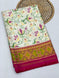 This Rajkot Patola saree is crafted with an intricate meenakari floral design across the fabric, enhanced by subtle plain zari borders and a beautifully detailed floral pallu in vibrant butter yellow. The blouse features a self plain fabric accented with an elegant zari border for a refined finish.