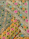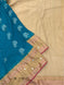 This Kanjeevaram Silk Saree is characterized by an intricate silver zari weave, featuring a geometric design and meenakari floral butta throughout the saree. The self gold zari bocade border and pallu add a touch of luxury to the overall look. The saree comes in a rich purple color and is paired with a contrasting blouse featuring gold zari stripes and a zari border.