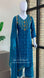 The Silk Straight Cut Set In Multi-Colour showcases a woven and geometric pattern, decorated with mirror, aari, and pearl work buttis. Additionally, the dress boasts a self-floral print on the bottom, while the chiffon dupatta features a floral print and lace border.