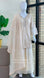 This Silk Straight Suit Set in Cream with Floral Zardozi Design, Adorned with Sequence, Pearl, and Thread Weave Buttis. Georgette Dupatta with Aari-Work, Pearl, and Sequence Work Buttis and Scallop Border.