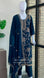 This teal-blue straight suit set is made from Tussore silk fabric. The dress features a magnificent Ajrak and patola print, embellished with delicate sequins, pearls, mirrors, and aari-work buttis. The matching patola printed bottom and dupatta add a chiffon fabric touch to complete the cohesive look.