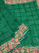 Lavender tussore bandhani saree showcases a comprehensive tie-dye bandhani pattern throughout, enhanced by a self-floral embroidered border and pallu. It includes a coordinating blouse for a cohesive ensemble.