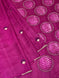 This beautiful tussore saree showcases all-over mirror work paired with a delicate shibori print. It features a charming self floral aari-work scalloped border and pallu in a lovely magenta-pink shade. The blouse is simple yet elegant, with a matching border to complete the look.