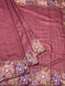 This peach-colored tussore saree showcases delicate aari-work polka dot buttis woven throughout. It is enhanced with a self-floral embroidered border and pallu, while the saree itself remains plain with a coordinated border for a refined finish.