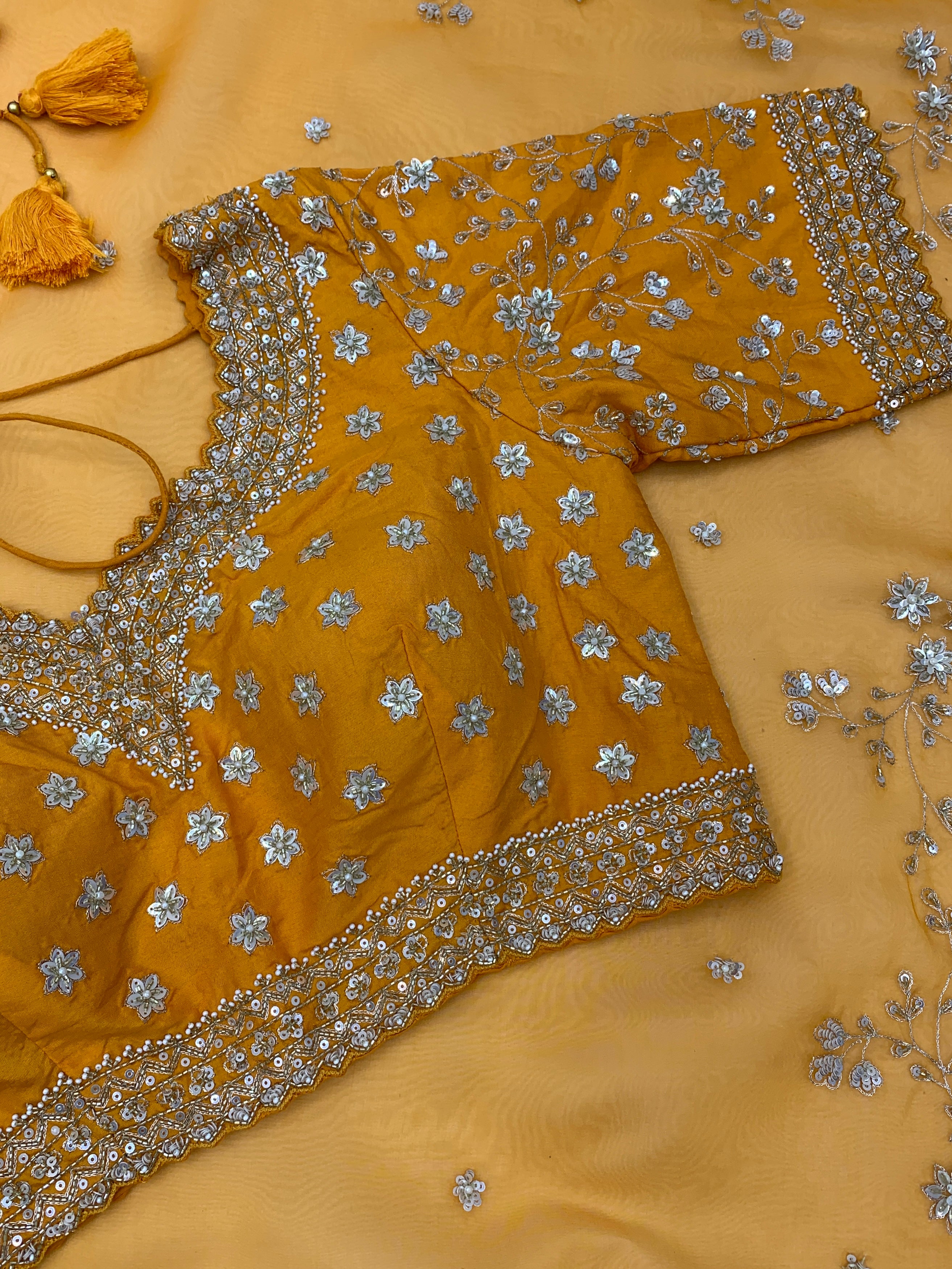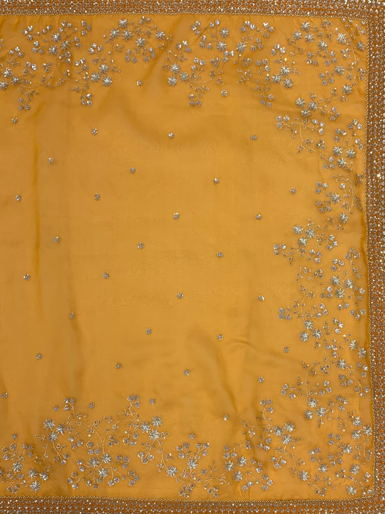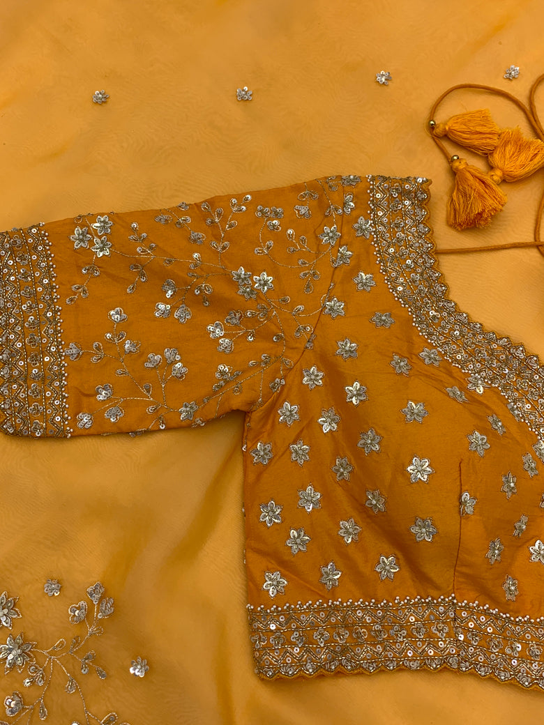 Orange Organza Saree With Readymade Blouse