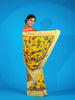 Crepe Floral Printed Saree With Embroidery Border Yellow In Colour