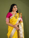 Patola saree features an intricate, all-over weave of floral buttis as well as a self tissue floral border and pallu. The stunning light-pink color adds to its appeal. Plus, an unstitched blouse in a contrasting, plain design with a border is included.