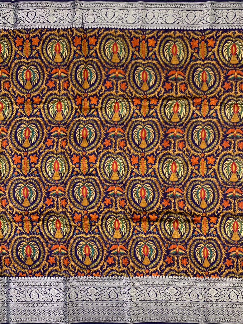 Chiniya Silk Saree Navy-Blue In Colour