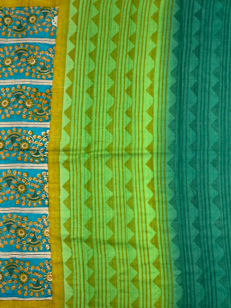 Tussore Printed Saree Rama-Green In Colour