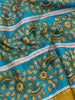 This saree showcases an elegant combination of a floral pattern and striped design, accentuated by a contrasting border and pallu in a serene rama-green hue. The plain bottle-green blouse perfectly complements the overall look.