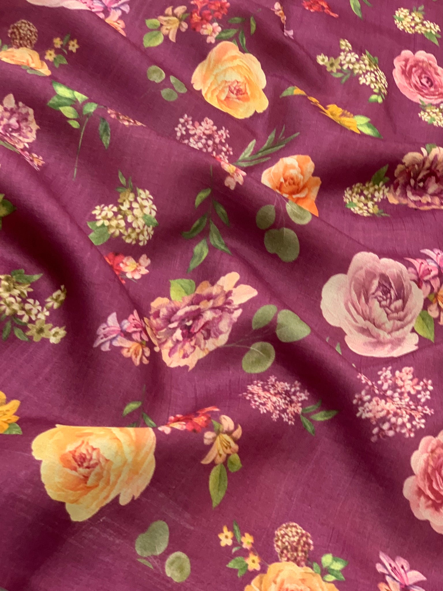 Tussore Printed Magenta-Pink In Colour