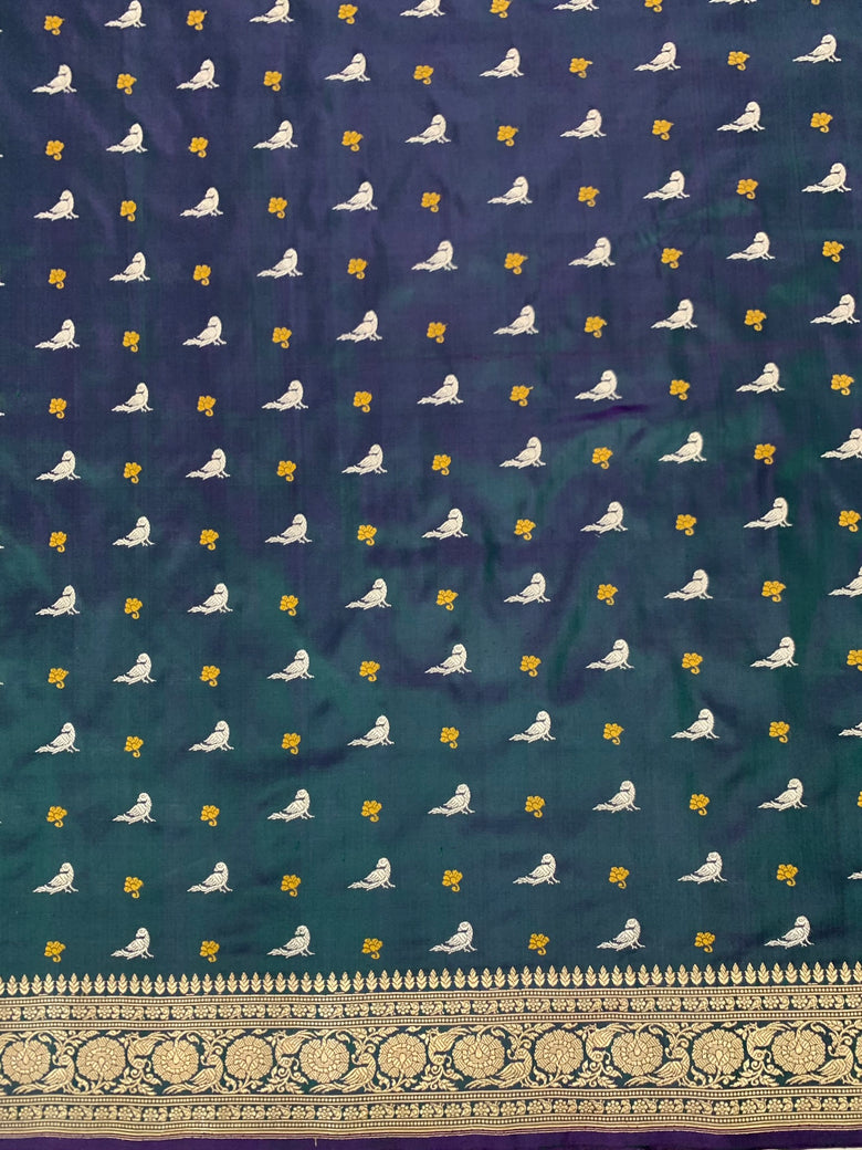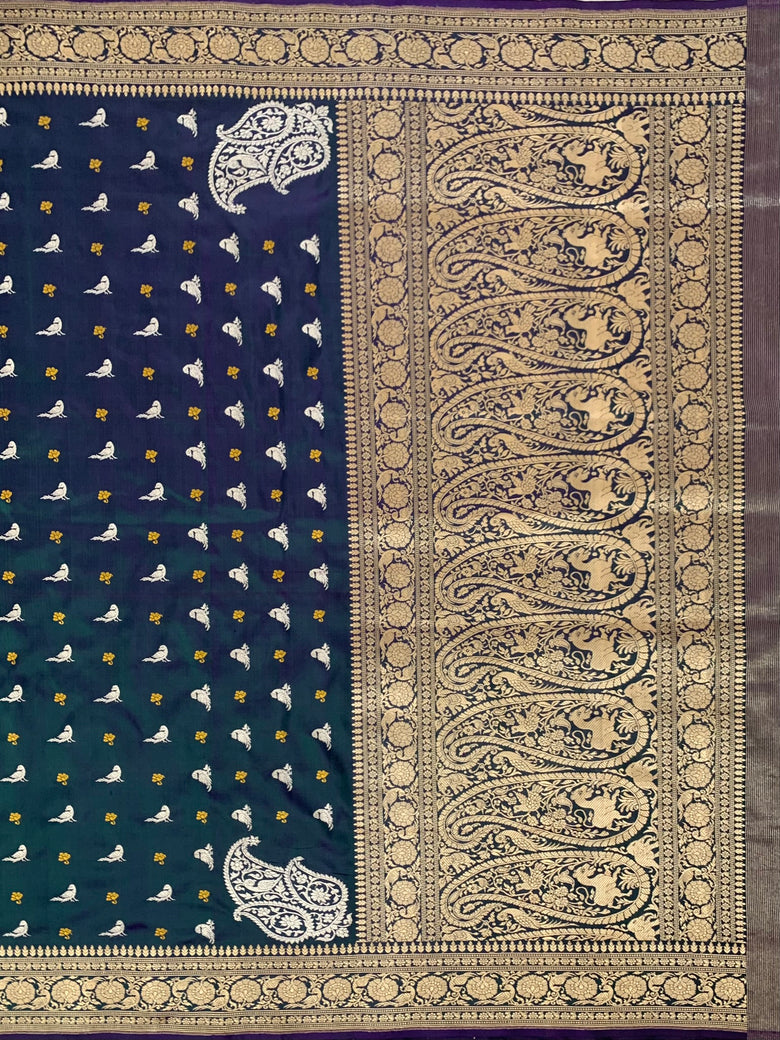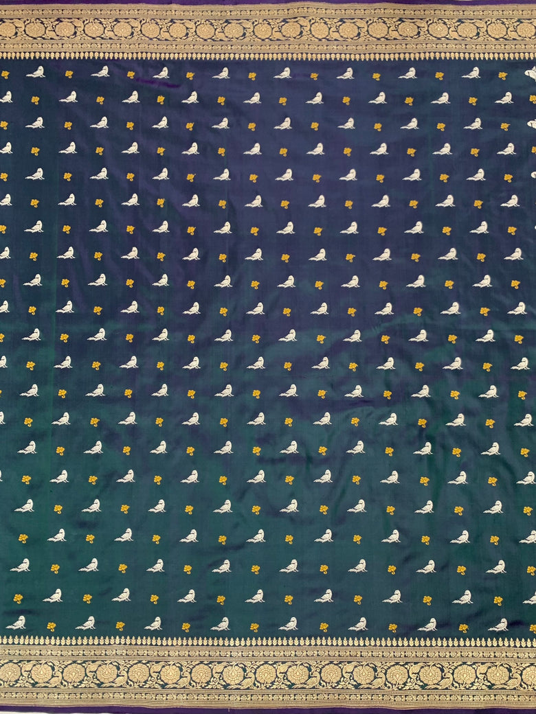 Banarasi Kadwa Butta Silk Saree Purple And Green Kalnetha Colour