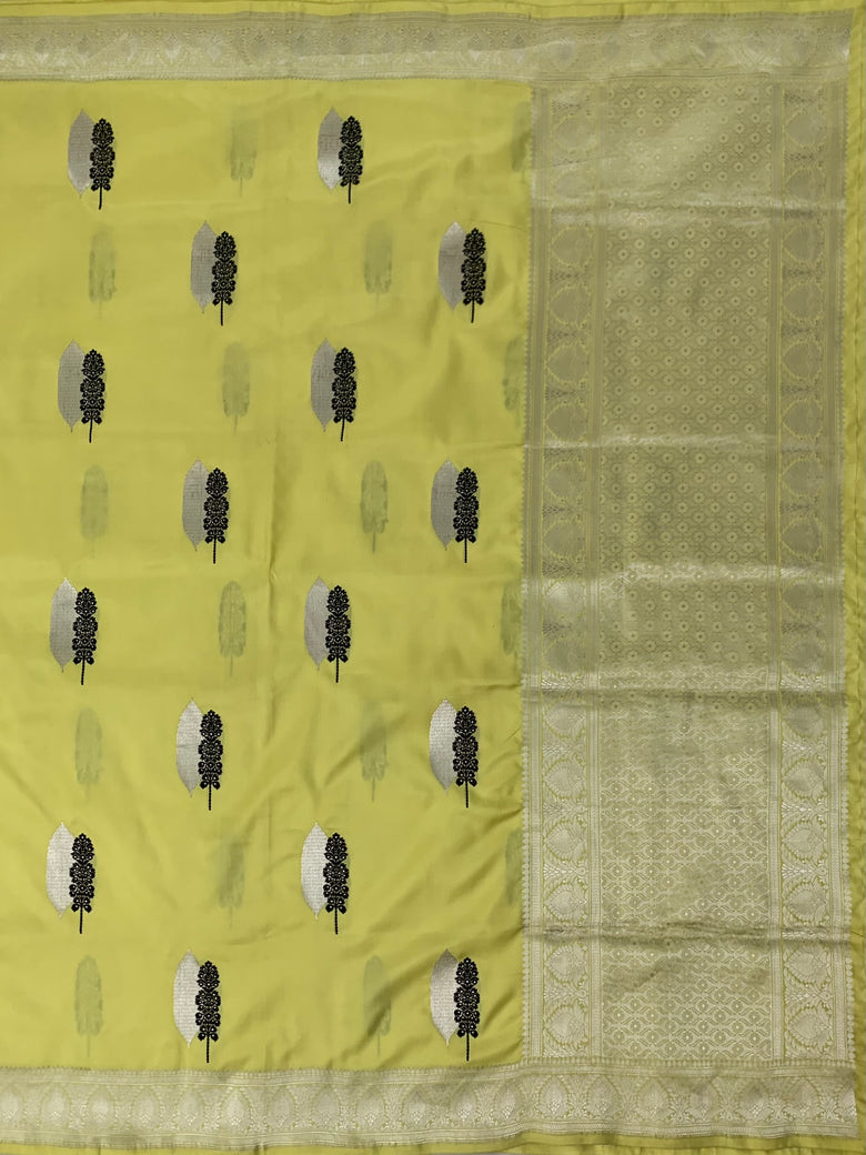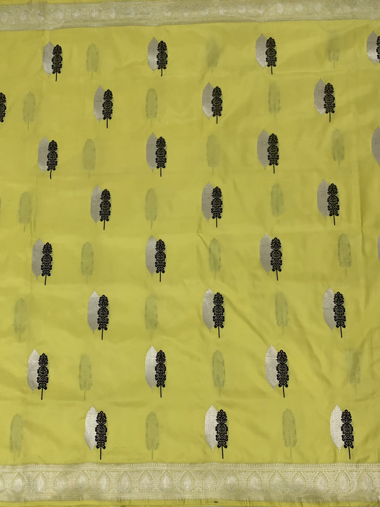 This Banarasi Silk Kadwa Butta With Black Thread Weave Butta Yellow Saree Combines Beauty, Precision, And Grandeur. The Incandescent Yellow Foundation Is Hugged By Silver Zari Kadwa Leaf Butta, Embraced Into A Self Border, And Extended The Same Grace Onto The Self Pallu . The Saree Comes With A Self Blouse That Can Be Worn On Its Own.