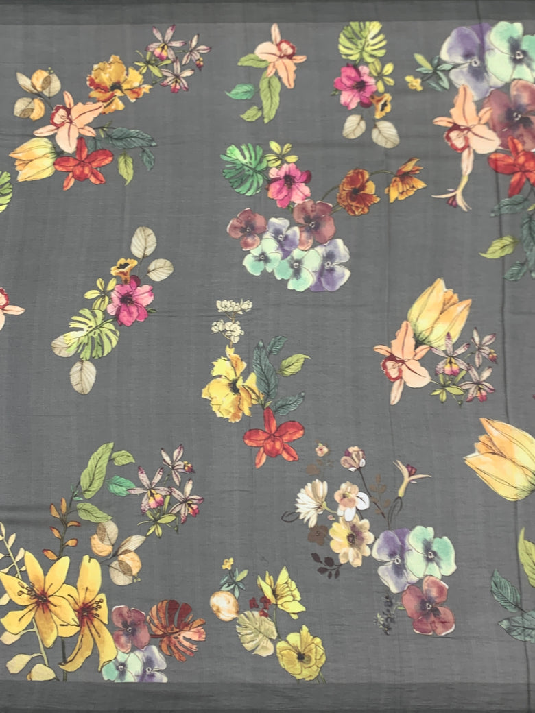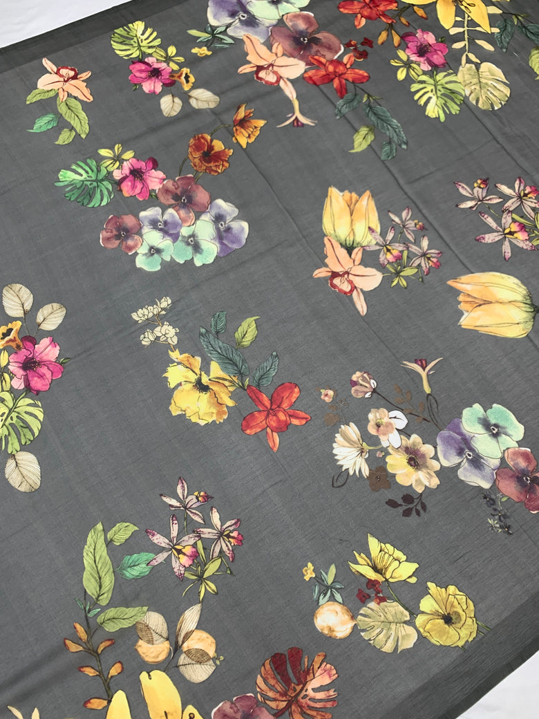 Chiffon Floral Printed Saree Dark-Grey In Colour