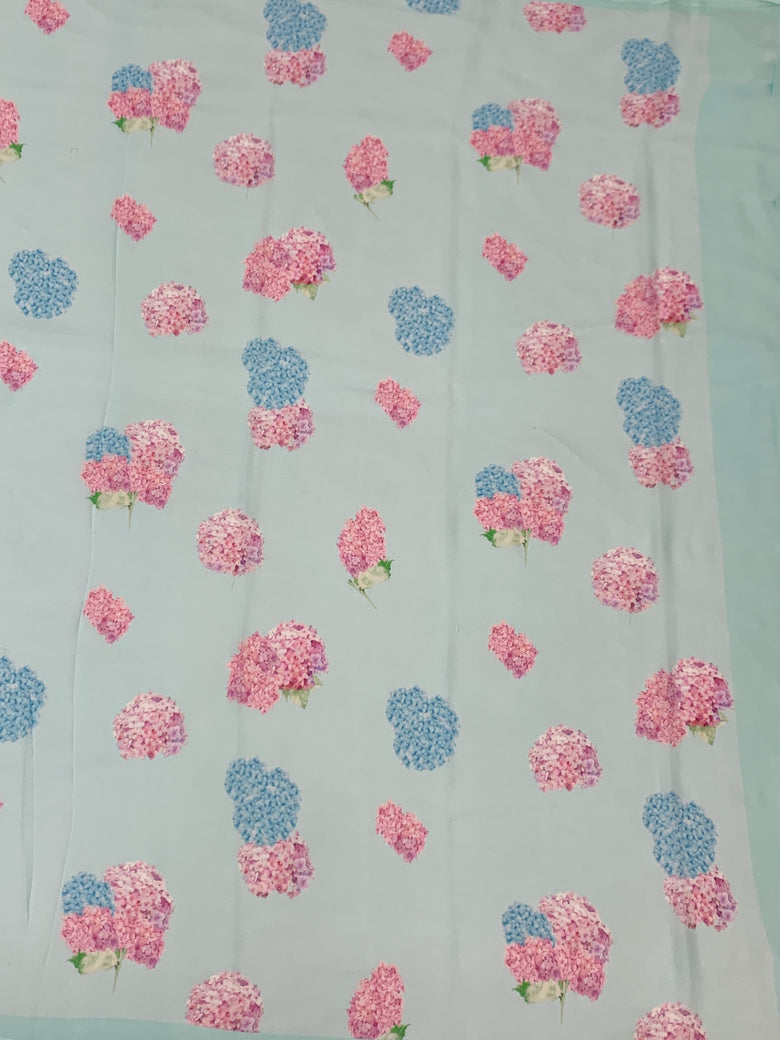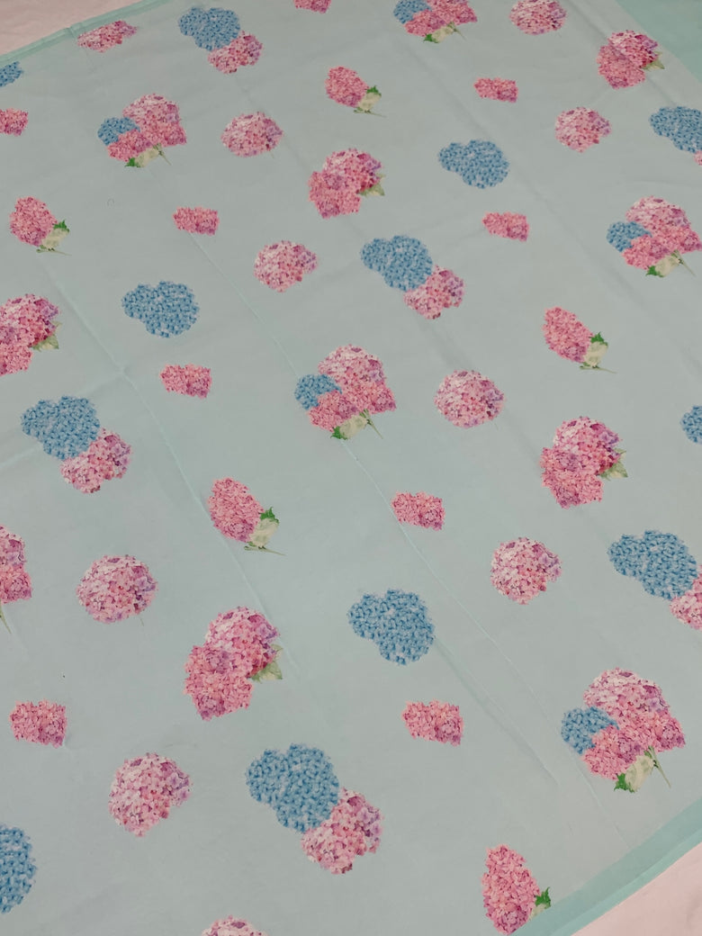 This powder-blue chiffon saree features a delicate floral print with scattered buttas across the fabric. It comes with a subtle self-design pallu and a plain crepe blouse, offering an elegant and graceful look for any occasion.
