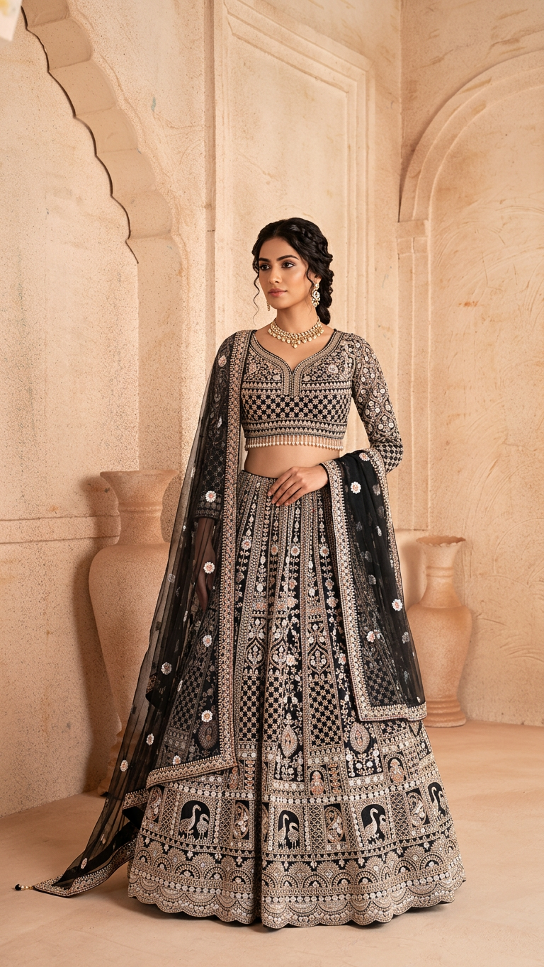Grey Lehenga Set with Hand Embroidery