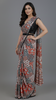 This ready-to-wear silk saree boasts an effortlessly chic multi-colour design with all-over floral and geometric prints and a sequin border. The blouse features elegant contrasting floral and sequin embellishments, elevating the overall look.