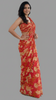 Ready to wear saree in red is crafted from silk and showcases a floral print throughout the fabric. It is complete with a shell tassel border and includes a self blouse for a cohesive look.