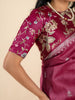 Featuring tussore blouse and delicate floral jaal embroidery, boasts a striking light-maroon hue and elegant self sleeves.