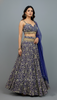 This lehenga set features a georgette material with a beautiful all-over floral print. The blouse is adorned with a matching floral print and embellished with sequence work. The set also includes a net dupatta with a border for a complete look.